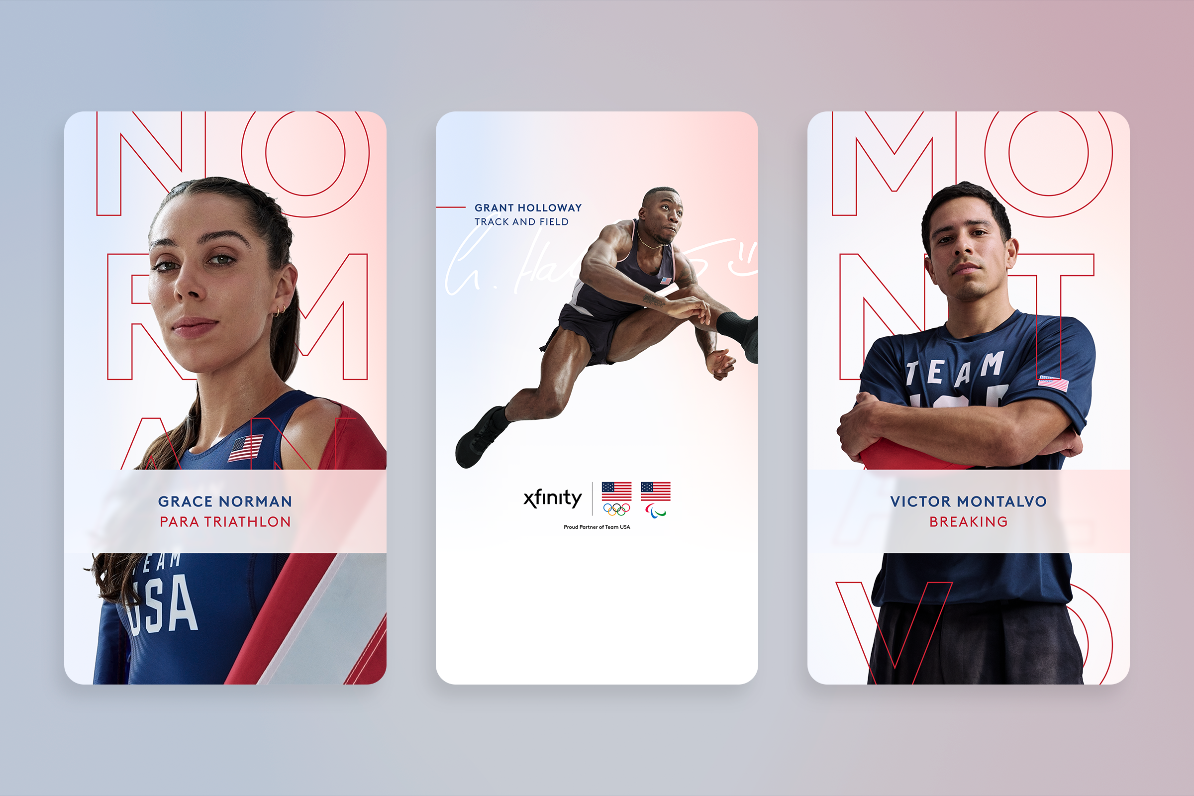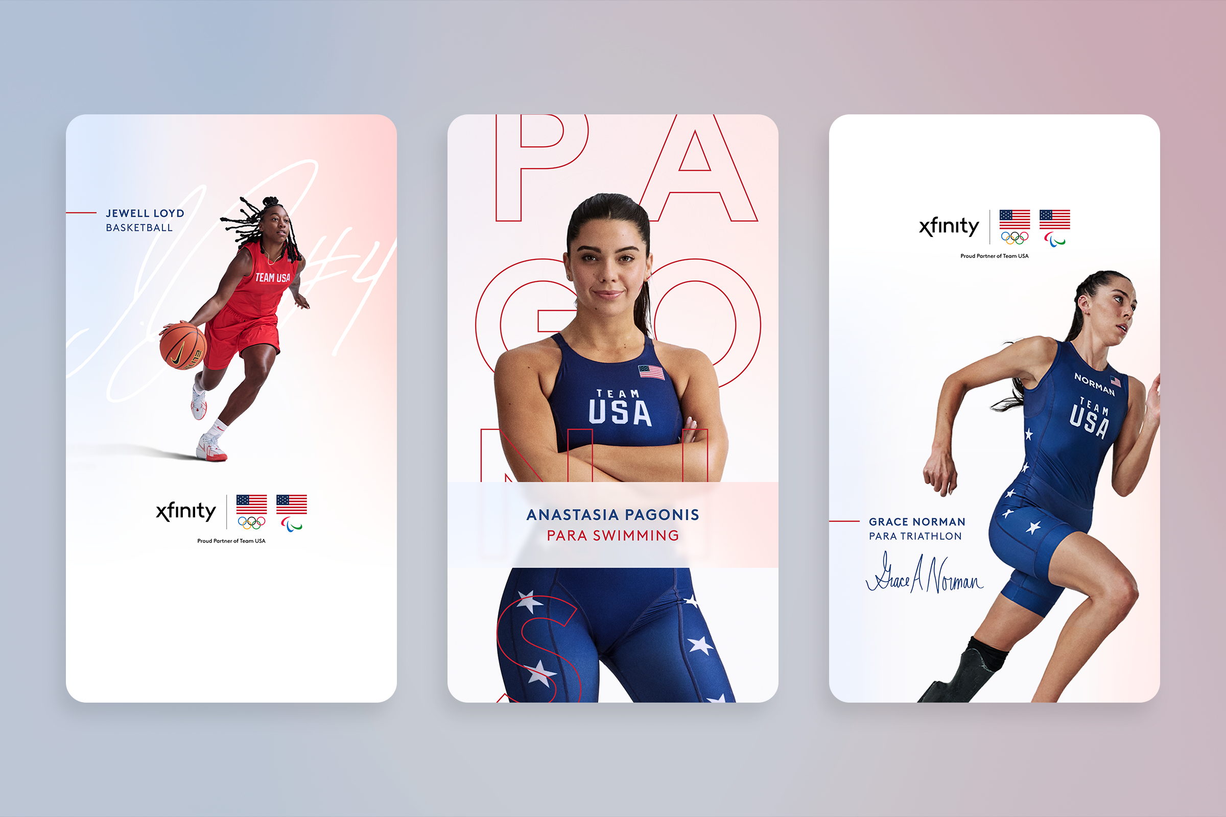 Xfinity proudly partnered with Team USA for the Olympic and Paralympic Games in Paris 2024. As a cross-collaboration between the design teams across our organization, I worked on multiple deliverables from art directing the key art retouching to creating print templates and even storyboarding social media assets.